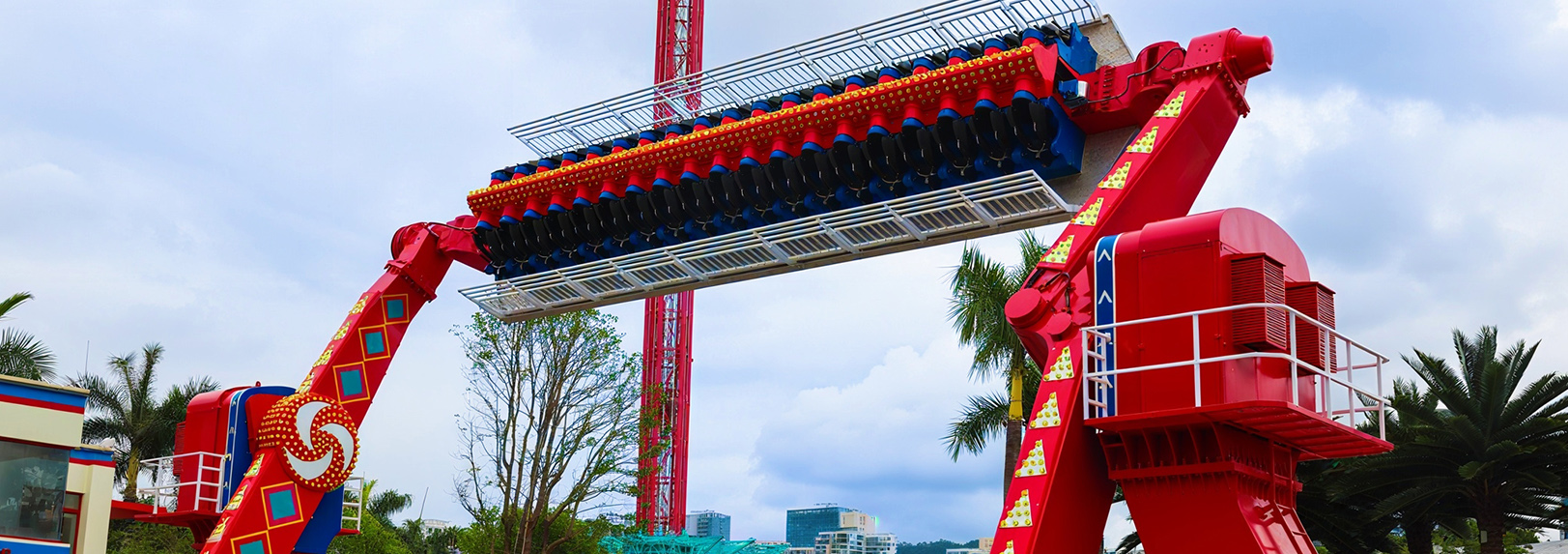 瞬间提升、跌落、停止,加上360°的疯狂翻滚,上下颠倒间的绝顶刺激和急速心跳,让你真正体会天旋地转的眩晕快感。你,敢不敢来挑战!